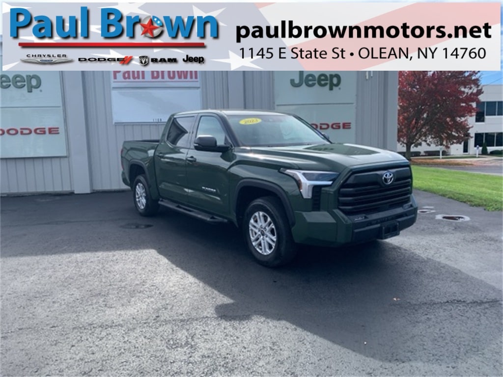 CARFAX One-Owner. 2023 Toyota Tundra SR5 4D CrewMax Army Green Odometer is 14124 miles below market average! 3.4L V6 4WD 10-Speed Automatic Final Price may require vehicle trade in and Paul Brown trade assistance , see website for details. For a hassle free purchase experience, reach out to the Sales team at Paul Brown Chevy at (716) 244-6077. Conveniently located on Route 16 North, Olean NY 14760. We are worth the trip! Travel from over 75 miles away and don't purchase we will supply you with $25 gas card! Paul Brown Chevy, A Dealer For the People! Our For The People Pricing means ZERO price increases at Paul Brown.
