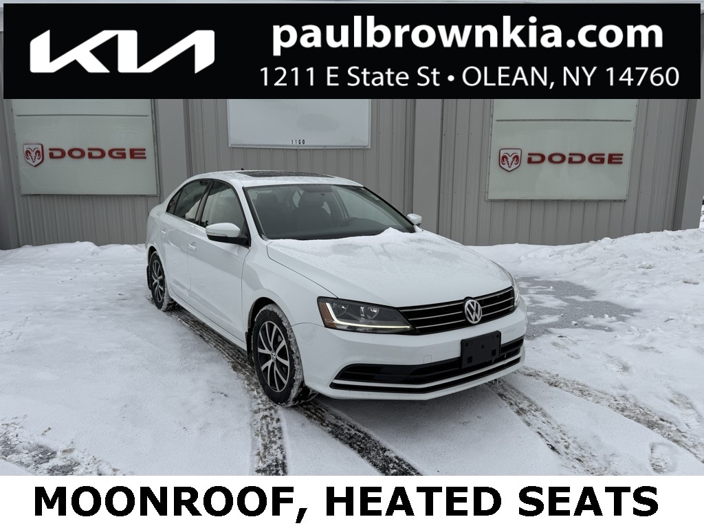 Clean CARFAX. 2017 Volkswagen Jetta 1.4T SE 4D Sedan Pure White Odometer is 36451 miles below market average! 1.4L TSI FWD 6-Speed Automatic with Tiptronic Local Trade, Air Conditioning, Emergency communication system: VW Car-Net, Exterior Parking Camera Rear, Heated door mirrors, Heated front seats, Low tire pressure warning, Power door mirrors, Power moonroof, Power windows, Remote keyless entry, Speed control, V-Tex Leatherette Seat Trim. 28/38 City/Highway MPG Final Price may require vehicle trade in and Paul Brown trade assistance, see website for details. For a hassle free purchase experience, reach out to the Sales team at Paul Brown Motors at (585-376-5057). Conveniently located on E State Street, Olean NY 14760. We are worth the trip! Travel from over 75 miles away and don't purchase we will supply you with $25 gas card! Paul Brown Chevy, A Dealer For the People! Our For The People Pricing means ZERO price increases at Paul Brown. Awards: