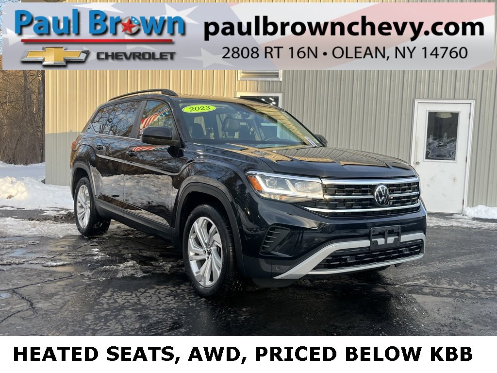 Priced below KBB Fair Purchase Price! CARFAX One-Owner. 2023 Volkswagen Atlas 3.6L V6 SE w/Technology 4D Sport Utility Deep Black Pearl 3.6L VR6 8-Speed Automatic with Tiptronic AWD Odometer is 7609 miles below market average! Exterior Parking Camera Rear, Front dual zone A/C, Fully automatic headlights, Heated Comfort Front Bucket Seats, Heated door mirrors, Low tire pressure warning, Perforated V-Tex Leatherette Seating Surfaces, Power door mirrors, Power driver seat, Power Liftgate, Rain sensing wipers, Rear air conditioning, Rear window defroster, Remote keyless entry, Wheels: 20 x 8J 5-Spoke Silver Painted Alloy. Final Price may require vehicle trade in and Paul Brown trade assistance , see website for details. For a hassle free purchase experience, reach out to the Sales team at Paul Brown Chevy at (716) 244-6077. Conveniently located on Route 16 North, Olean NY 14760. We are worth the trip! Travel from over 75 miles away and don't purchase we will supply you with $25 gas card! Paul Brown Chevy, A Dealer For the People!