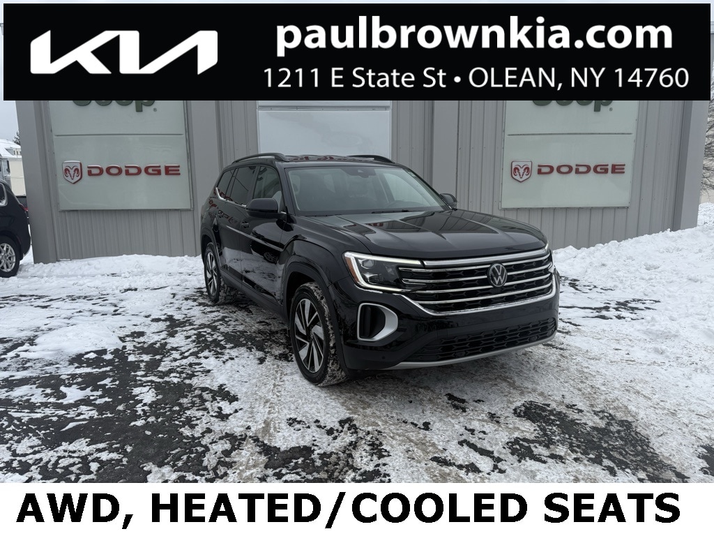 CARFAX One-Owner. Clean CARFAX. 2024 Volkswagen Atlas 2.0T SE w/Technology 4D Sport Utility Black 2.0L TSI AWD 8-Speed Automatic with Tiptronic 3rd row seats: split-bench, Emergency communication system: VW Car-Net Safe & Secure 5-year, Exterior Parking Camera Rear, Front dual zone A/C, Front fog lights, Heated door mirrors, Heated/Actively Ventilated Front Bucket Seats, Low tire pressure warning, Perforated V-Tex Leatherette Seating Surfaces, Power door mirrors, Power driver seat, Power Liftgate, Power windows, Rain sensing wipers, Rear air conditioning, Remote keyless entry, Speed control, Wheels: 20" 2-Tone Machined Alloy. 19/26 City/Highway MPG Final Price may require vehicle trade in and Paul Brown trade assistance, see website for details. For a hassle free purchase experience, reach out to the Sales team at Paul Brown Motors at (585-376-5057). Conveniently located on E State Street, Olean NY 14760. We are worth the trip! Travel from over 75 miles away and don't purchase we will supply you with $25 gas card! Paul Brown Chevy, A Dealer For the People! Our For The People Pricing means ZERO price increases at Paul Brown.