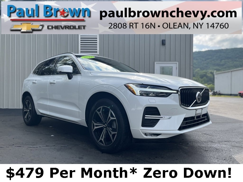 CARFAX One-Owner. 2022 Volvo XC60 B5 Momentum 4D Sport Utility Ice White 2.0L I4 Turbocharged Automatic with Geartronic AWD Odometer is 4056 miles below market average! *$479 per month / Zero cash or trade down / tax not included / 84 months and must qualify for top tier APR, Blonde City Weave Textile Upholstery, Emergency communication system: Volvo Cars App w/4 Year Subscription, Exterior Parking Camera Rear, Front dual zone A/C, Fully automatic headlights, Heated door mirrors, Heated front seats, Low tire pressure warning, Memory seat, Power door mirrors, Power driver seat, Rain sensing wipers, Rear window defroster, Wheels: 18 5-Spoke Silver Alloy. 22/28 City/Highway MPG Final Price may require vehicle trade in and Paul Brown trade assistance , see website for details. For a hassle free purchase experience, reach out to the Sales team at Paul Brown Chevy at (716) 244-6077. Conveniently located on Route 16 North, Olean NY 14760. We are worth the trip! Travel from over 75 miles away and don't purchase we will supply you with $25 gas card! Paul Brown Chevy, A Dealer For the People!
